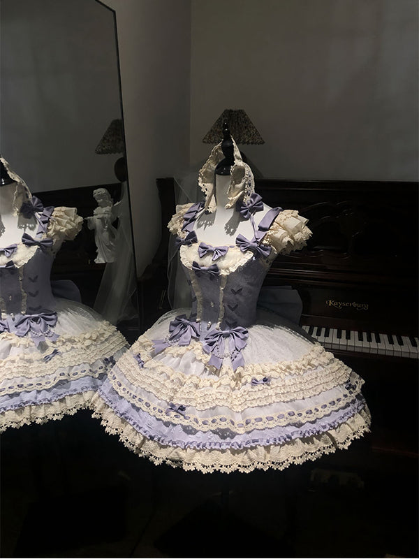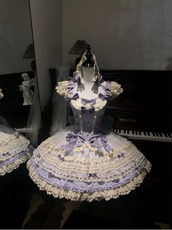 F72116 Purple Ballet Style Old-fashioned Cute Lolita Skirt Waist Slim Princess Fairy Lolita Skirt Dress